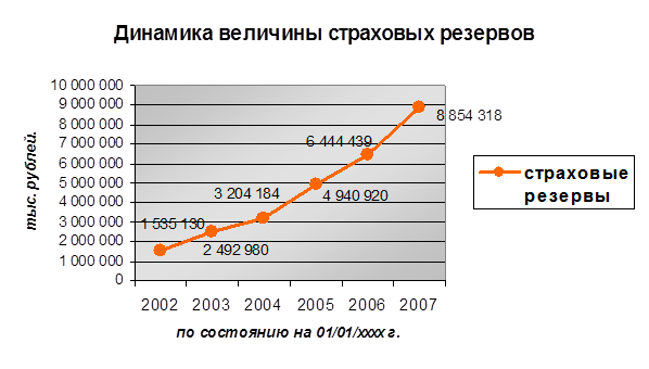 Страховые резервы по сравнению с 2006 годом возросли в 1,37 раза и на 1.01.2007 года составили 8 854 млн. рублей. В силу специфики страхового бизнеса как такового, для клиентов страховых компаний этот показатель имеет особое значение. Величина страховых резервов показывает, сможет ли страховая компания выполнить свои обязательства перед клиентами при любых условиях и в любой ситуации.