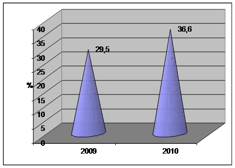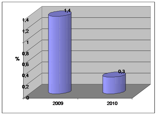 Вследствие неблагоприятного изменения курсов иностранных валют и цен на драгоценные металлы – уровень валютного риска за 2010 год существенно снизился: доля открытой валютной позиции в активах-нетто Банка сократилась с 1,4 до 0,3%.