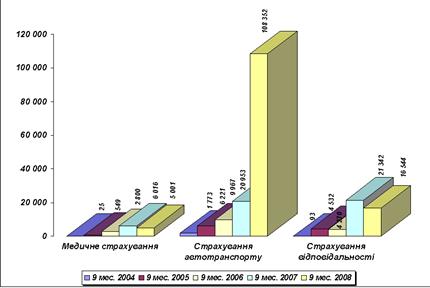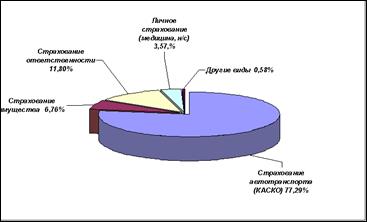 Рис. 1. Структура страхового портфеля ЗАО ФГ «Страховые традиции» за 9 месяцев 2008 года