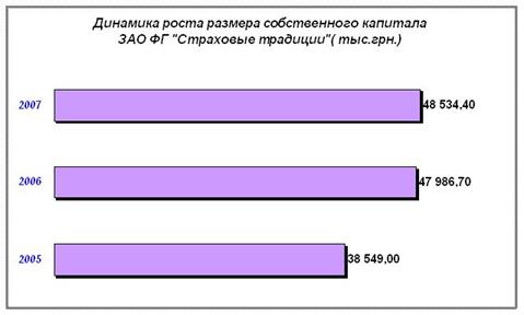 Рис.2. Динамика роста размера собственного капитала ЗАО ФГ «Страховые традиции» (тыс.грн.)
