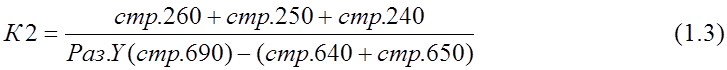 Коэффициент текущей ликвидности (общий коэффициент покрытия) К3 дает общую оценку ликвидности предприятия, в расчет которого в числителе все оборотные активы, в том числе и материальные (итог раздела II баланса):