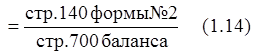 · Коэффициент наличия собственных средств К4. Показывает долю собственных средств, предприятия в общем объёме средств предприятия и определяется как отношение собственных средств (итог раздела III баланса, увеличенный на сумму срок 640 - «доходы будущих периодов» и 650 – «резервы предстоящих расходов» ко всей сумме средств предприятия (стр.700):