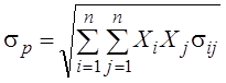 В общем случае вычисление стандартного отклонения портфеля, состоящего из n активов, вычисляется по формуле