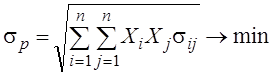 Обозначим R – доходность портфеля, желаемую инвестором. Тогда формально модель создания портфеля может быть записана в следующем виде