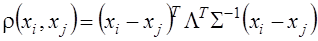 В наиболее общем случае обычно используют обобщенное (взвешенное) расстояние Махаланобиса /21/