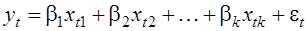 (регрессора) в наблюдении t,