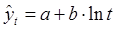 Логарифмическая модель подходит для описания процесса, когда при постоянном абсолютном изменении значений изучаемого показателя во времени темп этих изменений замедляется, но не прекращается совсем. Если, наоборот, наблюдается замедляющееся снижение уровней процесса, причем эти уровни стремятся к некоторому пределу, для описания тренда хорошо подходит гиперболическая модель. /22/