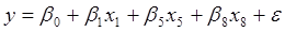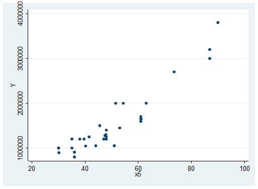 Задавая уровень значимости для коэффициентов корреляции 5% можно сделать вывод о том, что на цену квартиры оказывают влияние только число комнат (x1), общая площадь (x5) и субъективная оценка состояния квартиры (x8). При этом линейная связь между ценой можно охарактеризовать как сильную, поскольку коэффициенты корреляции больше 0,5. Наименьшее влияние оказывает субъективная оценка состояния квартиры (x8), наибольшее – общая площадь квартиры (x5). Остальные показатели не оказывают значимого влияния на цену.