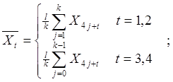 для одноименных кварталов. Например, для временных рядов поквартальной динамики процедура усреднения может быть описана выражением: