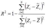 Показатель детерминации принимает значения от нудя до единицы и рассчитывается по формуле: