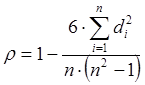 где d – абсолютная разность между рангами значений Хt и