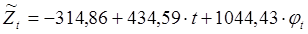являются статистически значимыми по критерию Стьюдента, так как расчётное значение статистики Стьюдента больше табличного со степенью свободы, равной n – m – 1 = 14 – 2 – 1 = 11, при уровне доверительной вероятности 0,95 (n – это число уровней временного ряда, m – это количество параметров в уравнении тренда без постоянного члена).