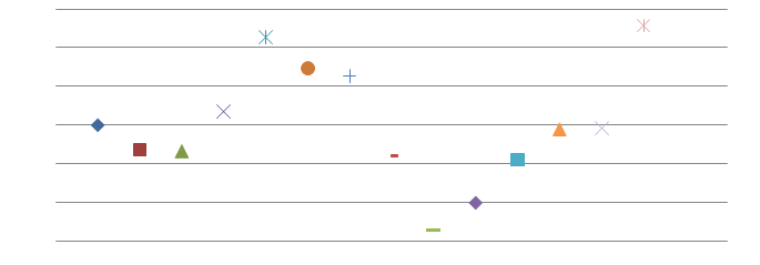 Проверим вторую предпосылку: из данных табл. 10 видно, что сумма остатков равна нулю. Также построим график зависимости случайных остатков от фактора времени (см. рис. 5).