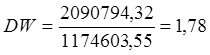 В статистической таблице находим значения dL и dU критерия Дарбина-Уотсона на уровне значимости 0,05, при заданном числе уровней временного ряда (14) и числе параметров в уравнении тренда (2): 0,91 и 1,55 [Приложение 2]. Следовательно, автокорреляция остатков отсутствует, так как dU