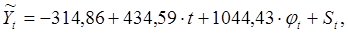Тренд-сезонная модель поквартальной динамики объемов выданных ипотечных кредитов по Новосибирской области имеет вид:
