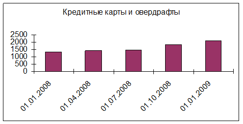 Рисунок 2.1 - Динамика объема кредитов по продукту «Кредитные карты и овердрафты» ЗАО «ВТБ-24» в 2008 году, млн. руб.