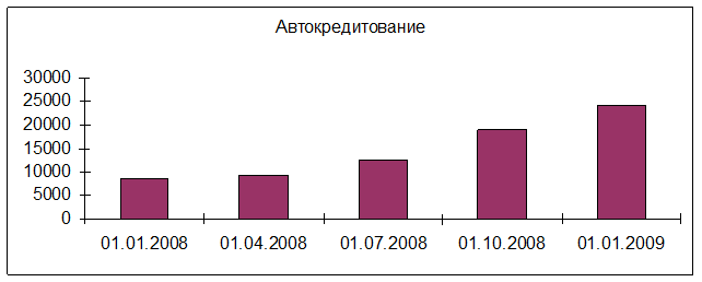 Динамика портфеля автокредитов ЗАО «ВТБ-24»» в 2008 году представлена на рис. 2.4.