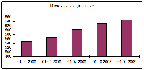 Рисунок 2.4 - Динамика портфеля ипотечных кредитов ЗАО «ВТБ-24» в 2008 году, млн. руб.