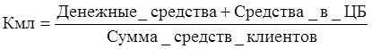 Коэффициент мгновенной ликвидности рассчитывается как отношение суммы средств на корреспондентском счете и в кассе к расчетным и текущим обязательствам.