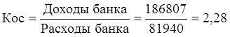 Коэффициент общей стабильности (Кос) позволяет сопоставить разнонаправленные потоки полученных и уплаченных процентов банком, а также доходы и расходы по всем видам деятельности банки. Чтобы банк оставался жизнеспособным, расходы от операций и инвестиций должны покрываться за счет полученных доходов, а если они недостаточны, работу банка можно охарактеризовать как неэффективную.