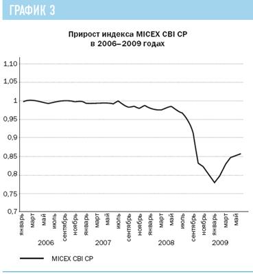 График 3 "Прирост индекса MICEX CBI CP в 2006-2009 годах"