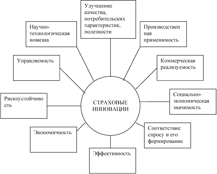 Сущность и содержание инноваций в страховом бизнесе базируются на методологических основах инноватики, учете свойств и функций инноваций, законов и закономерностей инновационных процессов, специфике управления инновационной деятельностью и др. Основные свойства страховых инноваций, их характерные черты представлены на рисунке 2.