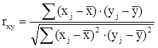 Одна из рабочих формул для расчёта коэффициента корреляции имеет вид: