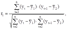 Эту величину называют коэффициентом автокорреляции уровней ряда первого порядка, так как измеряет зависимость между соседними уровнями ряда t и t-1, т.е. при лаге 1 [15, с. 230].