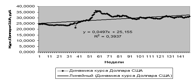 Рисунок 10 - Параметры линейного тренда для Доллара США