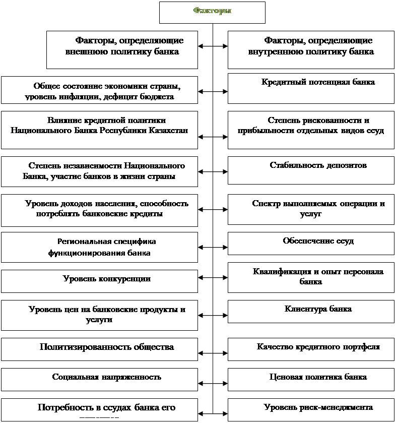 Рассмотрим более подробно отдельные составляющие факторов, влияющих на формирование кредитной политики банка.