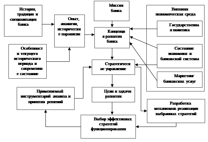 Общая схема формирования миссии, концепции и стратегии развития банка, а также факторы, определяющие этот процесс, показаны на рисунке 3.