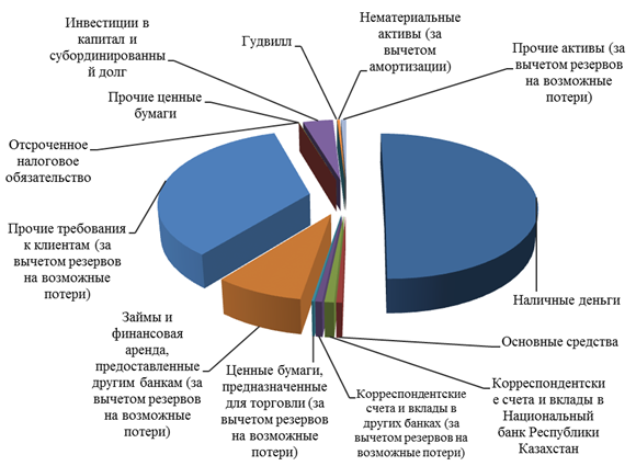 На основе данных таблицы 7 можно построить диаграмму активов банка за 2010 год, позволяющую более наглядно представить структуру активов банка. (Рисунок 2)