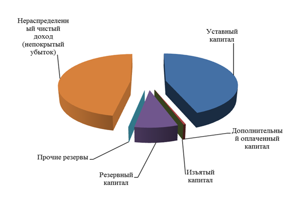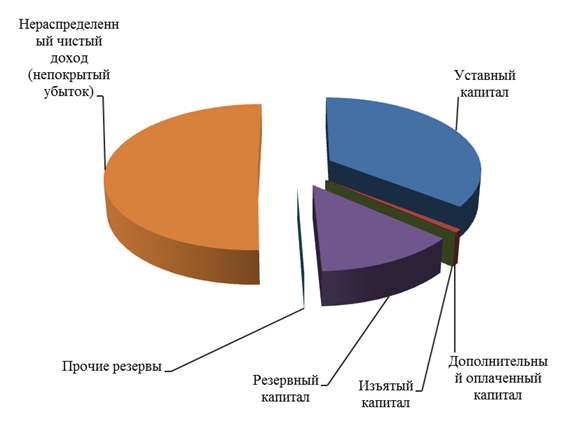 Из данной таблицы 9 также видно, что в структуре капитала банка на 01.01.2010 года наибольший удельный вес составляет, как и в 2010 году нераспределенный чистый доход – 50,61%, далее следует уставной капитал – 35,50%, который включает в себя простые акции – 20,74% и привилегированные акции – 14,76%. А наименьший удельный вес составляют прочие резервы, который составляет 0,01% и так далее. На основе данных таблицы 10 построим диаграмму капитала ДБ АО «HSBC Банк Казахстан» по видам за 01.01.2010 года. (Рисунок 6)