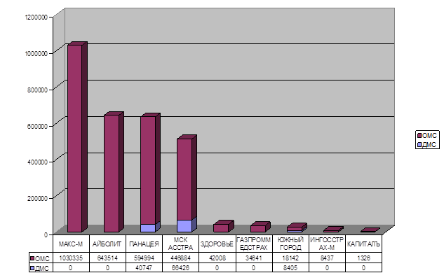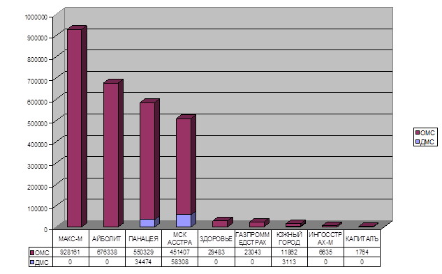На 1 сентября 2006 года число застрахованных по программам обязательного медицинского страхования (далее – ОМС) составило 623 тысячи человек число застрахованных, по программам добровольного медицинского страхования (далее – ДМС): 150 тысяч человек.