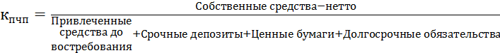 Коэффициент чувствительности пассивов, оценивающий степень обеспечения наиболее чувствительных к изменению процентной ставки привлеченных средств, можно рассчитать по формуле: