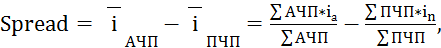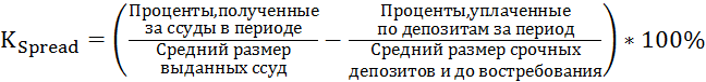 Введем понятие показателя доходности банка — спрэда. Спрэд — разница между процентными ставками по активным и пассивным операциям банка: