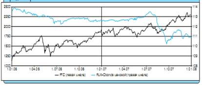 Рынок корпоративных ценных бумаг. В 2007 году замедлились темпы роста основных ценовых индикаторов российского рынка акций. Индекс ММВБ по высился на 12% и на конец года составил 1888,86 пункта, индекс РТС (см. рис. 5) возрос на 19%— до 2290,51 пункта (в 2006 году— рост на 68 и 71% соответственно).